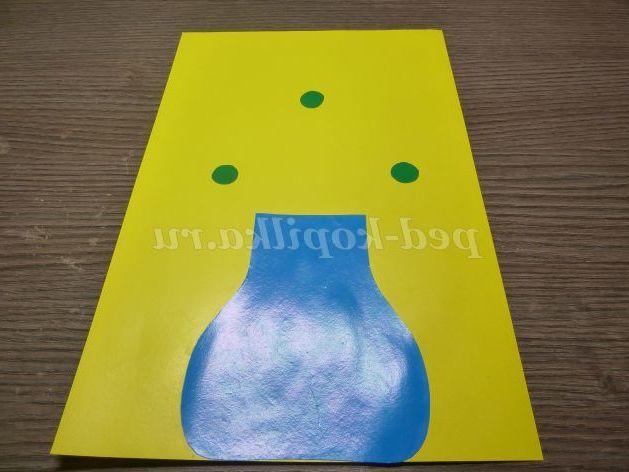 2. Приклеюємо вазу на аркуш жовтого картону.