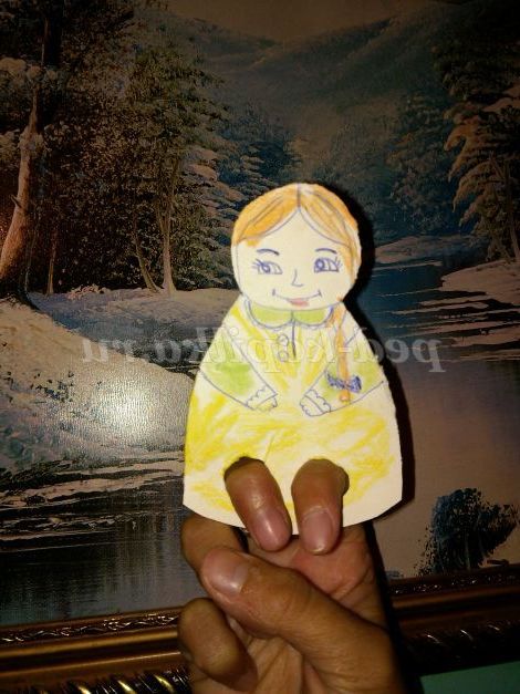 Як правило, учні задають питання, а де ж ніжки лялечки? Тоді вчитель пояснює, що наша чарівна лялечка і ноги у неї будуть рухливі. А як це зробити? Просто просунути пальчики в дірочки і наша лялечка забігає! Справжнє чарівництво! Діти приходять в захват, така лялечка, зроблена своїми руками, та ще й «жива» їм дуже подобається і відразу кожна дитина загоряється бажанням пограти з нею. Тоді вчитель пропонує влаштувати ляльковий театр на уроці