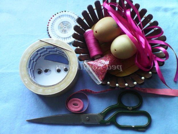 Вся принадність цієї поробки в тому, що собівартість її - сущі копійки. Яйце, вынутое з шкаралупи, ви можете використовувати у випічку - воно не пропаде, стрічок вам буде потрібно близько 2 метрів, що за ціною вийде не більше 5 рублів. Зате виглядає такий подарунок витончено і дуже мило.