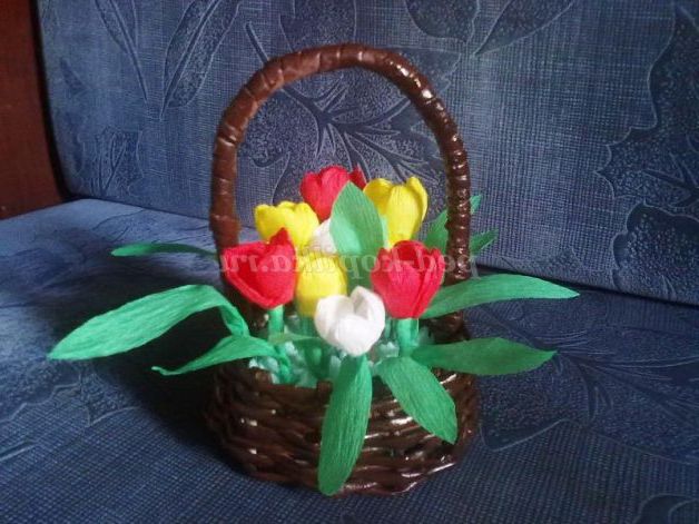 «Весняні тюльпани» з гофрованого паперу. Майстер-клас з покроковим фото.