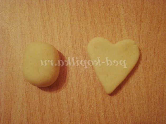 Для голови катаємо кулька. Робимо сердечко з допомогою форми (можна просто виліпити).