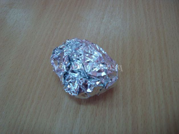 Загорнути фольгу в коржик. Катати між долонями ( як скачуємо кульку з пластиліну), поки шви не загладятся.