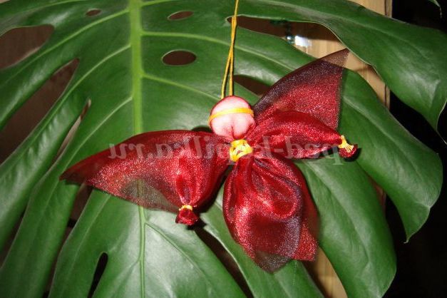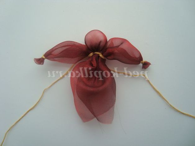 Тепер приступаємо до крил. Маленький скласти квадрат по діагоналі, щоб вийшов трикутник. Робимо складки так, щоб надати форму крыльям.перевязываем ниткою.