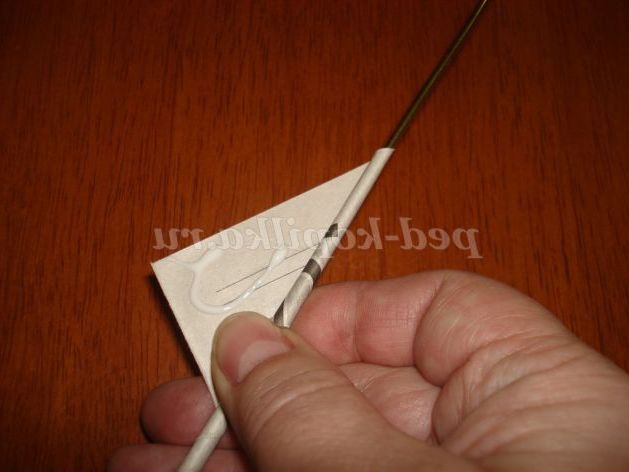 За допомогою спиці скручуємо трубочку, починаючи закручувати з лівого нижнього кута