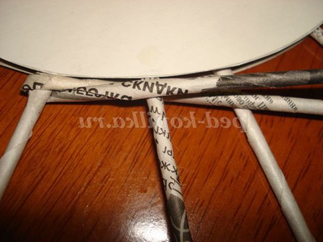 Візьмемо один круг з картону потрібного розміру і приклеїмо на нього трубочки на однаковій відстані один від одного