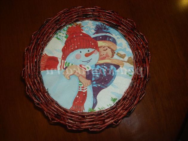 Техніка виконання: плетіння з газет, декупаж.