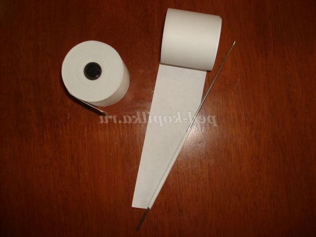 Далі необхідно накрутити трубочки. Трубочки будемо крутити з касової стрічки з допомогою спиці