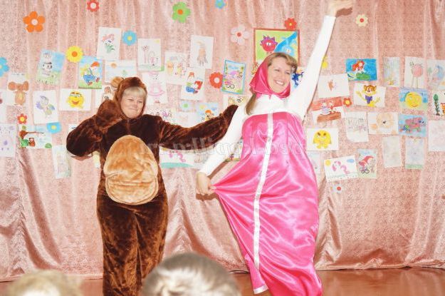 Маша співає, ведмідь танцює. В останньому куплеті пісні на сцену виходять всі герої.