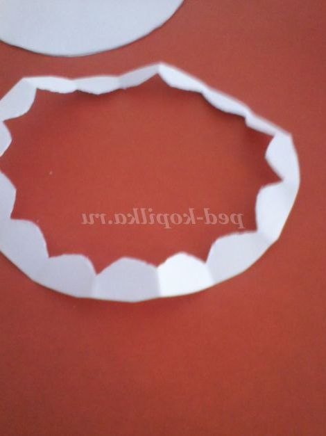 Беремо другий вирізаний круг білого кольору і робимо його розміром менше зрізуючи. Це буде у нас обличчя нашої Неваляшки.