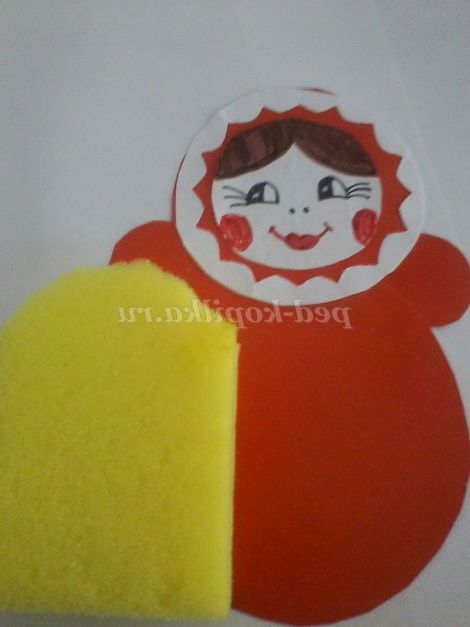Овал з губки приклеюємо на животик нашої Неваляшки.