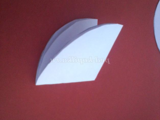 Беремо один гурток білого кольору і сложиваем його навпіл і ще раз навпіл і так до трикутної форми.