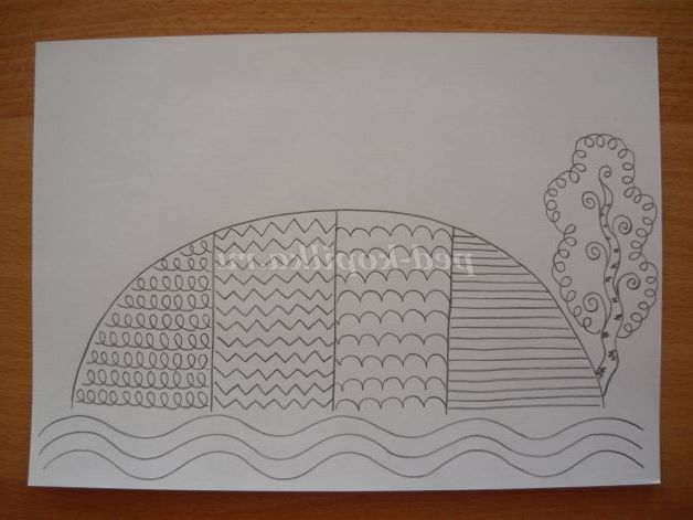 Кожна частина острова прикрашена різними лініями (прямі горизонтальні,хвилясті, ламані, "петельки", "горбки").