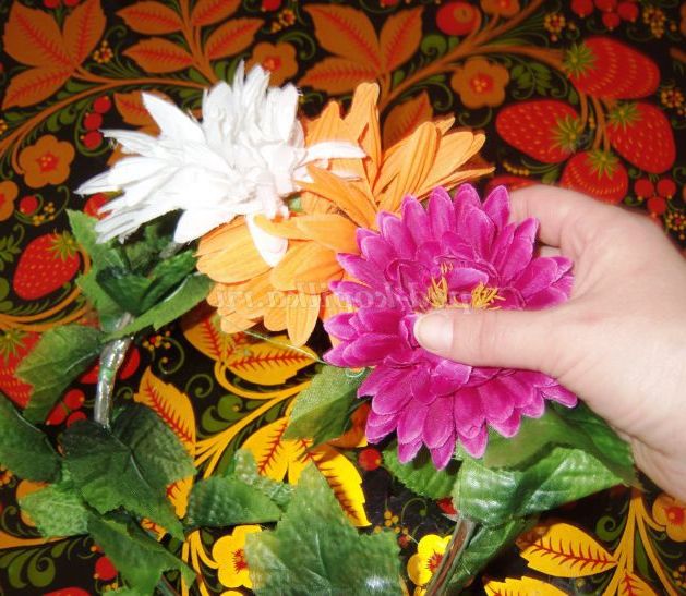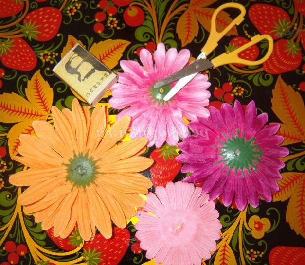 Ніжки у квітів обрізаємо і " підпалюємо сірниками, щоб вони не кололи голову.
