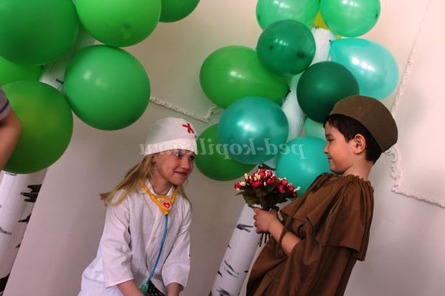 1-ша ведуча: Сьогодні ми зібралися, щоб відзначити 9 Травня - світле і радісне свято. Багато років тому в цей день закінчилась війна. Ми з вдячністю згадуємо наших воїнів, захисників, які відстояли мир в жорстокій битві. Всім солдатам, ветеранам, кого з нами немає, ми зобов'язані тим, що живемо сьогодні під мирним небом. Вічна їм слава!