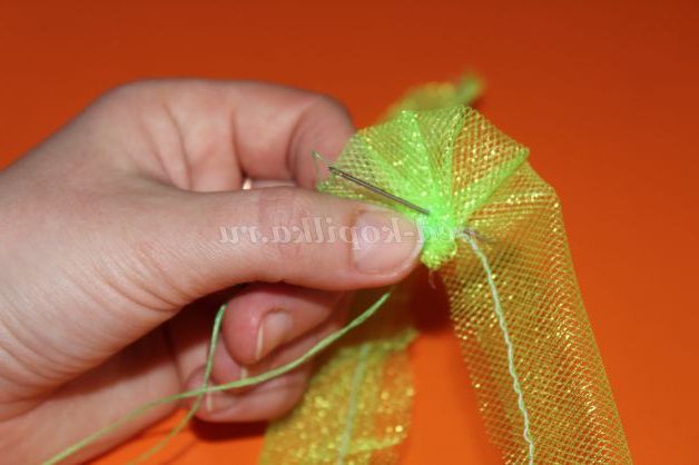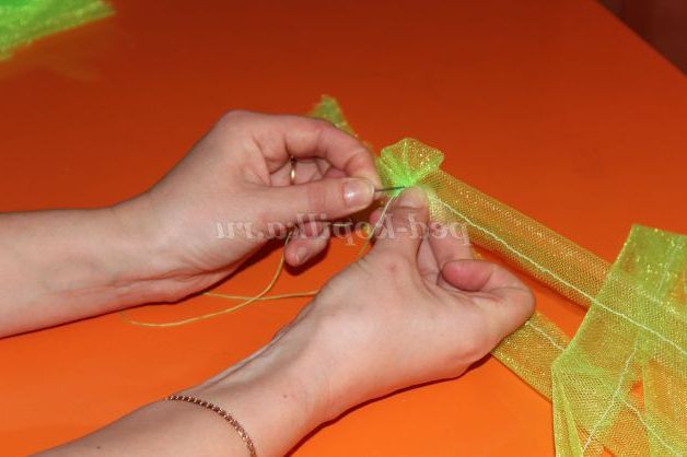 Відрізаємо від сітки потрібного вам кольору смужку, шириною 5 см. і довжиною 2 метри.