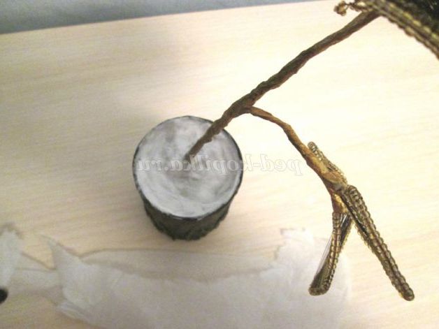 Высушим стебло і прикрутимо до нього гілку з листочками, потім ще раз обклеїмо їх.