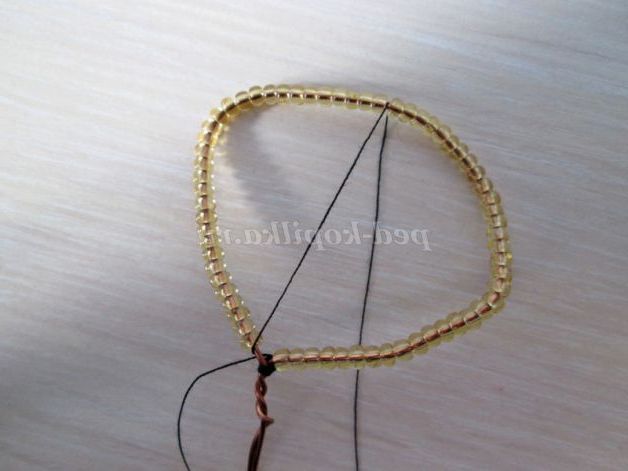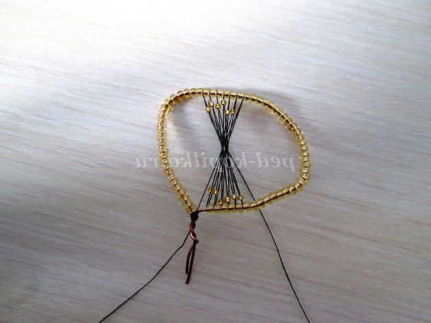 При обмотування одночасно будемо розподіляти бісер на площині пелюстки.