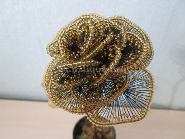 Майстер-клас «Золота роза» у техніці бісерної ганутели.