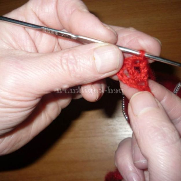 9. Підсовуємо бісер до гачка і повертаємо виріб.