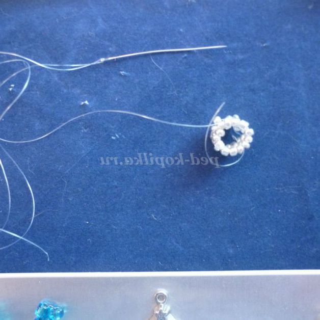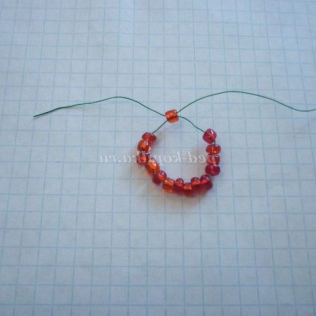 1.Вставьте волосінь в голку. Наберіть 12 бісеринок і пройдіть в першу «в прямому напрямку», щоб вийшло кільце.