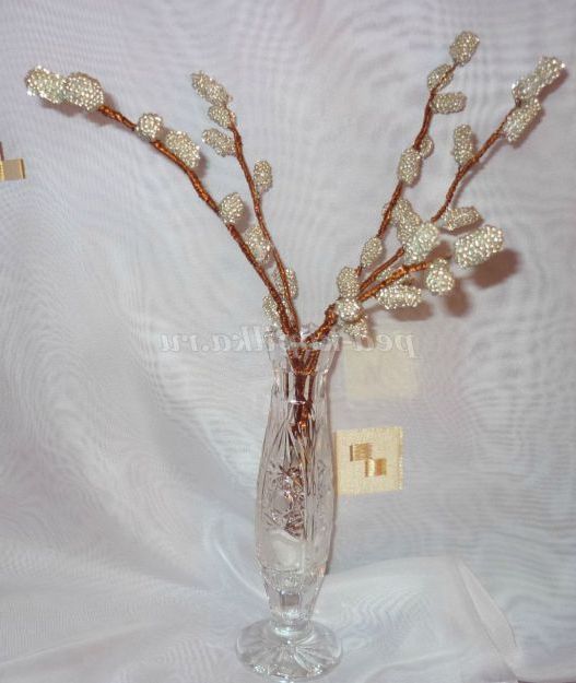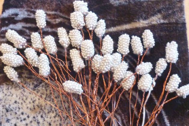 9.Отрежьте шматочок дроту довжиною 20-30 див Пройдіть дві бісеринки підстави нирки. Скрутіть дріт.