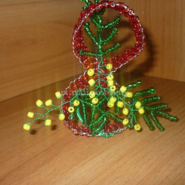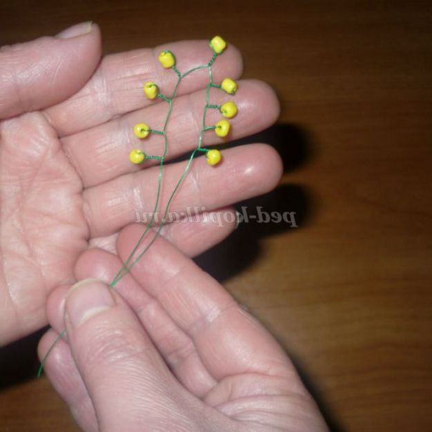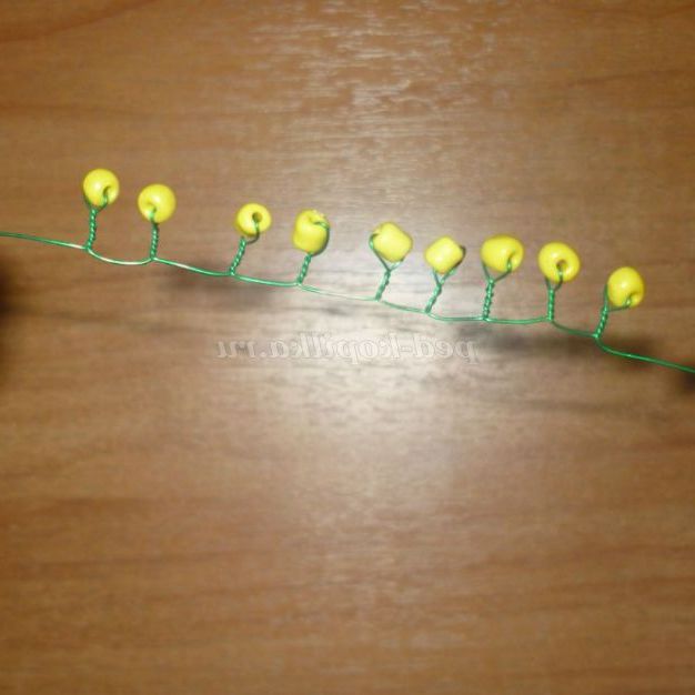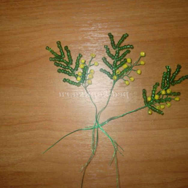 Рекомендації: дану роботу можна плести використовуючи дрібний бісер, (дріт довжиною 1м.20см. без додавання); для гілочок мімози добре підійде стеклярус.