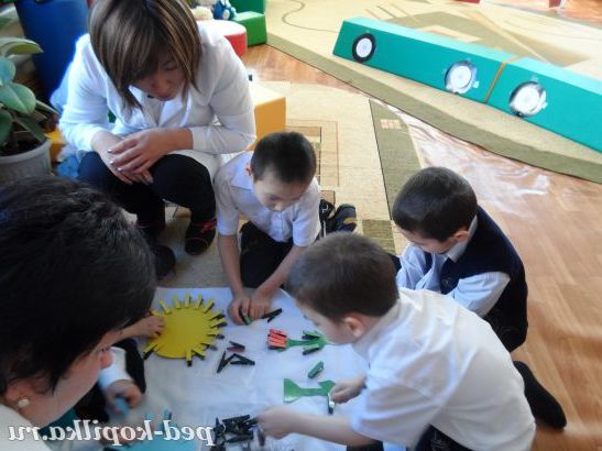 (Зображення об'ємне і діти самі пристібають відсутні прищіпки відповідного кольору. )