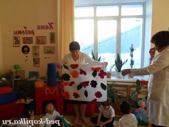 Діти, давайте зробимо красивий незвичайний килим, тільки треба не приклеювати листя і квіти, а пристібати на гудзики.