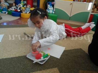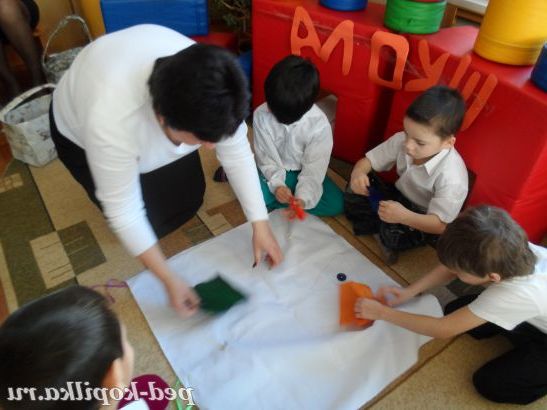 У зв'язку з тим що у занятті брали діти з обмеженими фізичними можливостями, з діагнозом ДЦП, всі заняття проходило з використанням нижньої горизонтальної площини., не за столами.