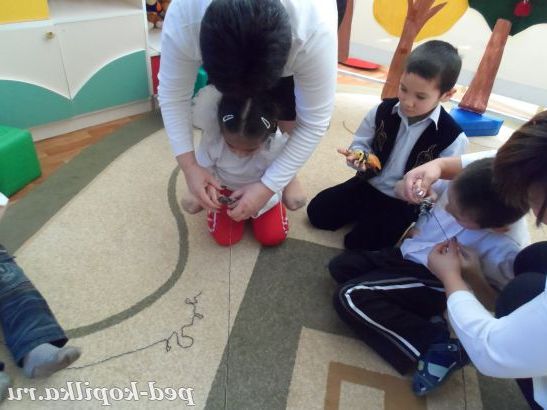 - Діти, подивіться які жахливі комахи з'явилися в нашому саду! Щоб вони не з'їли наші фрукти , давайте допоможемо нашому павучки заплутати їх у павутину.