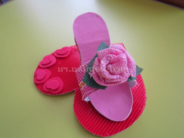 Ось така туфелька в подарунок нашим мамам у мене вийшла. Думаю,що таку роботу по силам зробити дошкільнику 5 років. Пізніше у своєму фотоальбомі покажу які роботи вийшли у моїх вихованців.