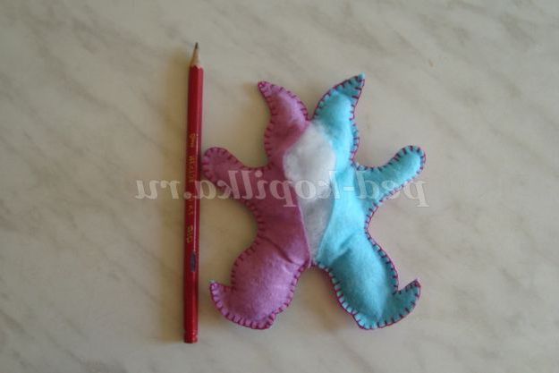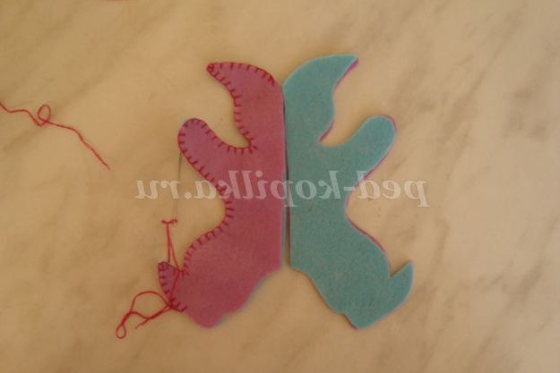 Крок 4. Зшиваємо деталі іграшки петельним швом, використовуючи яскраві нитки муліне