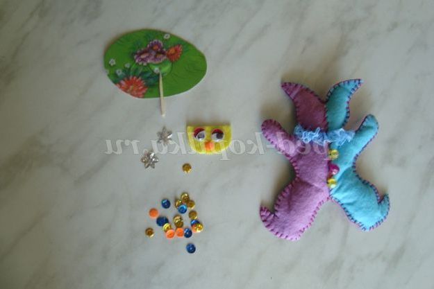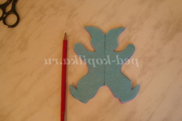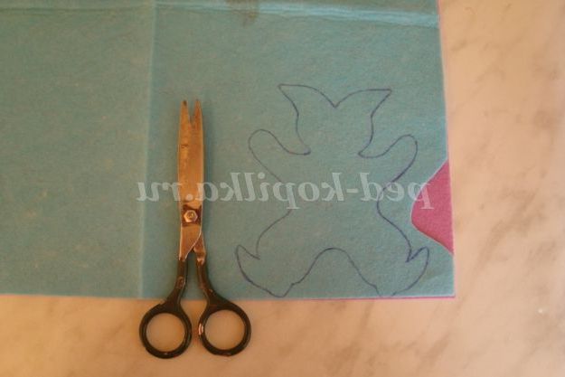 Крок 1. Фетр двох різних кольорів укладаємо в два шари, обводимо шаблон іграшки