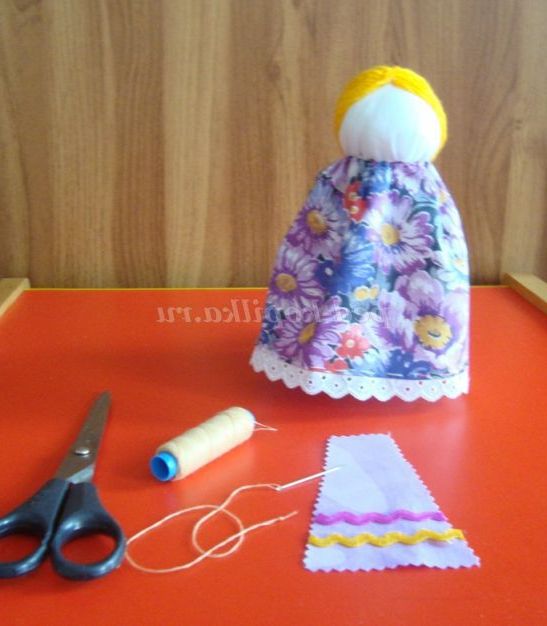 Крок 20. Пов'язуємо хустинку на голову ляльки, закріплюємо. Лялька «Веснянка» готова.