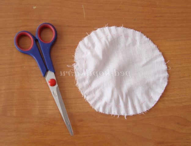 Крок 2. З х/б тканини білого кольору вирізаємо коло діаметром 12 див. - це буде голова ляльки.