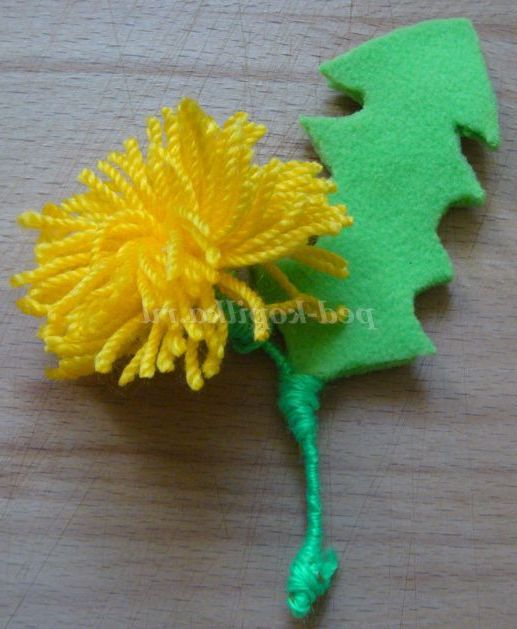 Матеріали для роботи: модель кульбаби, картонний шаблон для навивания нитки з необхідним набором пряжі, м'яка дріт для стебел і листя, листя з флісу.