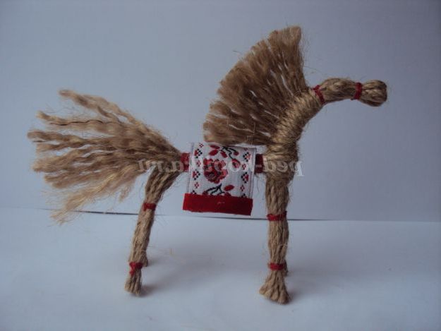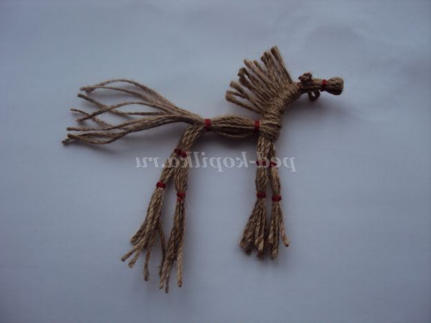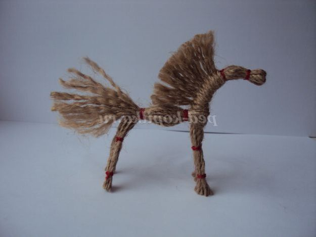 Декоративна фігурка коня і кози з джутового шпагату може прикрасити будь-який сучасний інтер'єр, а заодно і нагадати про давні витоки народного мистецтва.