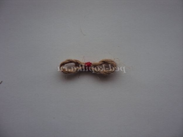 . 4. Взяти смужку шпагату 8 див., скласти бантиком і перев'язати червоною ниткою посередині - це вуха.