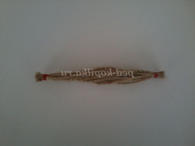 2. Взяти смужки шпагату за 27см. у довжину (8 шт), зав'язати на середині червоною ниткою «ірис».