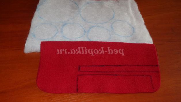 5 сантиметрів для ніг і рук, прямокутник з кольорової тканини для шапочки розміром 14 сантиметрів в довжину і 3 см в ширину, прямокутник розміром 16 сантиметрів у довжину, 1 сантиметр в ширину для шарфика. Виріжемо всі деталі (фото 2, фото 3)
