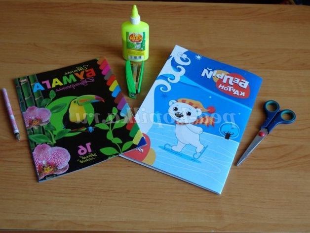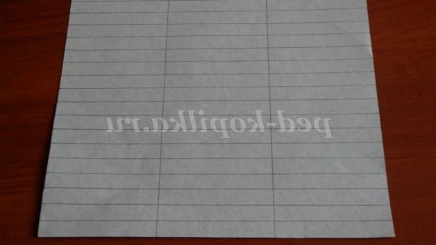 5. Нарізати смужки. Склеїти клеєм ПВА обидва краї кожної смужки вгорі, але не перегинаючи їх у лінії згину.