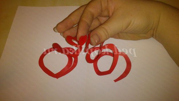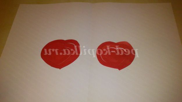 7.Приклеиваем на лист наше серце не далеко від лінії згину