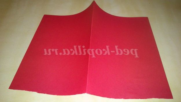 1.Берем папір червоного кольору і розрізаємо його навпіл.