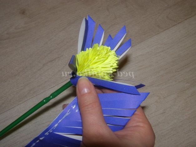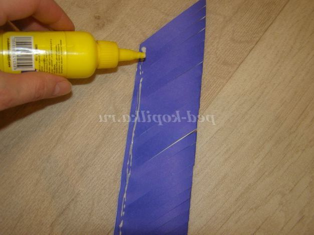 Тепер наносимо клей на край смужки і акуратно починаємо її намотувати на стеблинку (трубочкою)