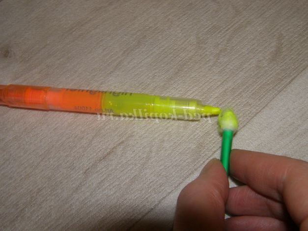 Білий колір ватної палички закрасимо видільником тексту жовтого кольору
