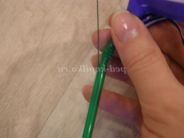 Дротом протикаємо трубочку, вставляємо листочок в стеблинка
