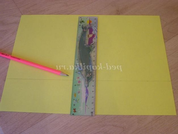 Складаємо альбомний аркуш уздовж навпіл - шириною кожної половини 10 сантиметрів,розрізаємо.