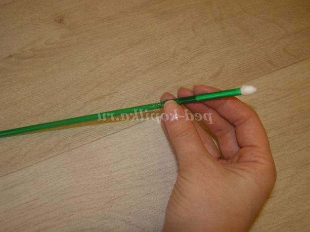 Починаємо робити квітку стеблинки. Ватяну паличку розрізаємо навпіл