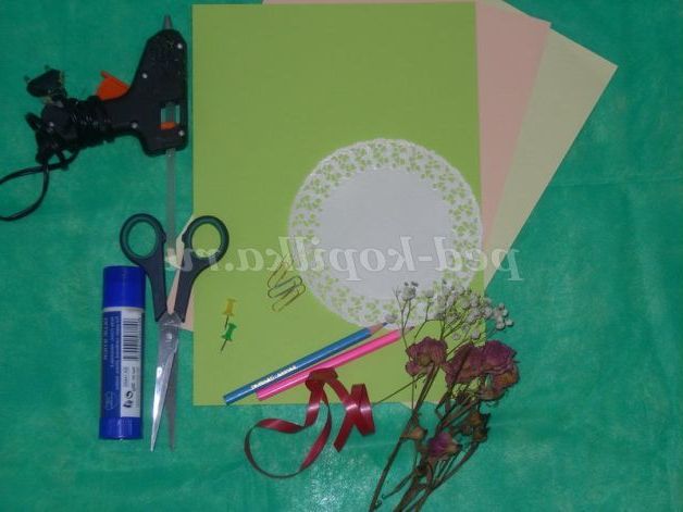 - дрібні канцелярські приладдя для декорування листівки (скріпки, кнопки, гумка тощо),