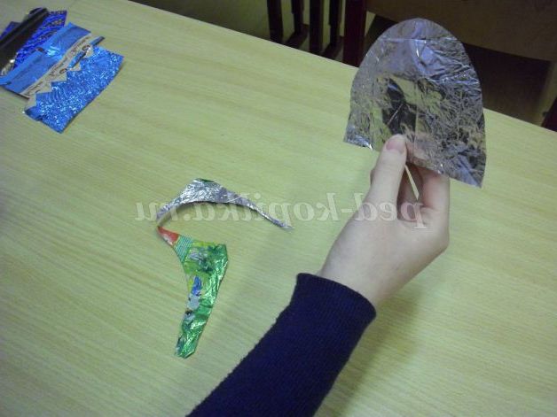 Замети вирізаємо з будь-яких фантиків з блискучою зворотною стороною.